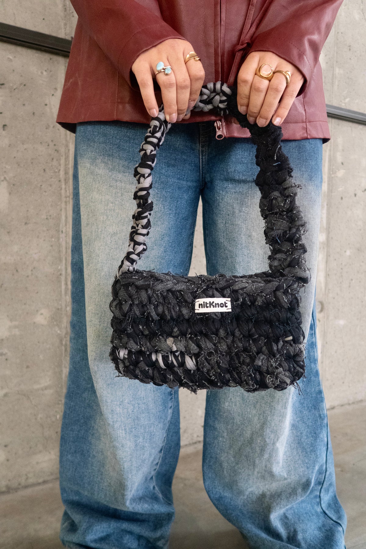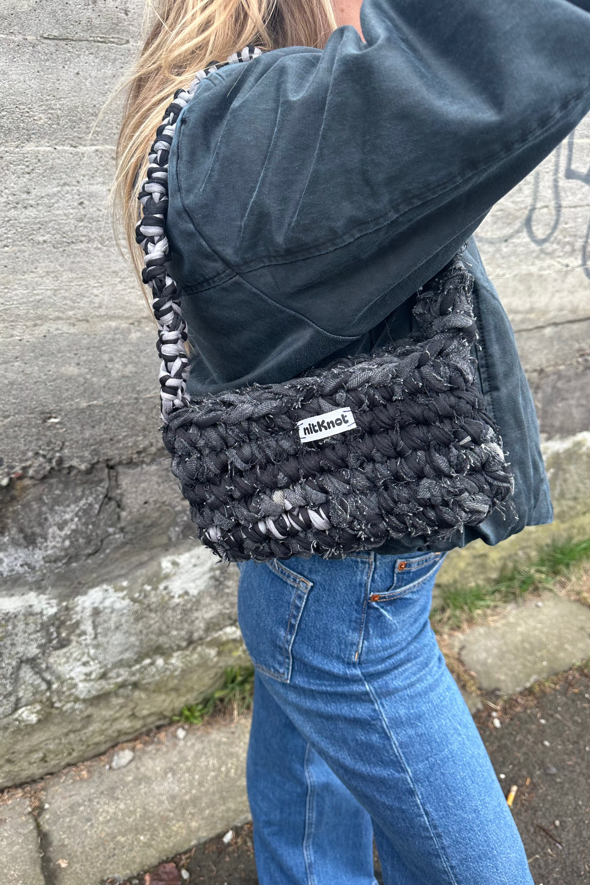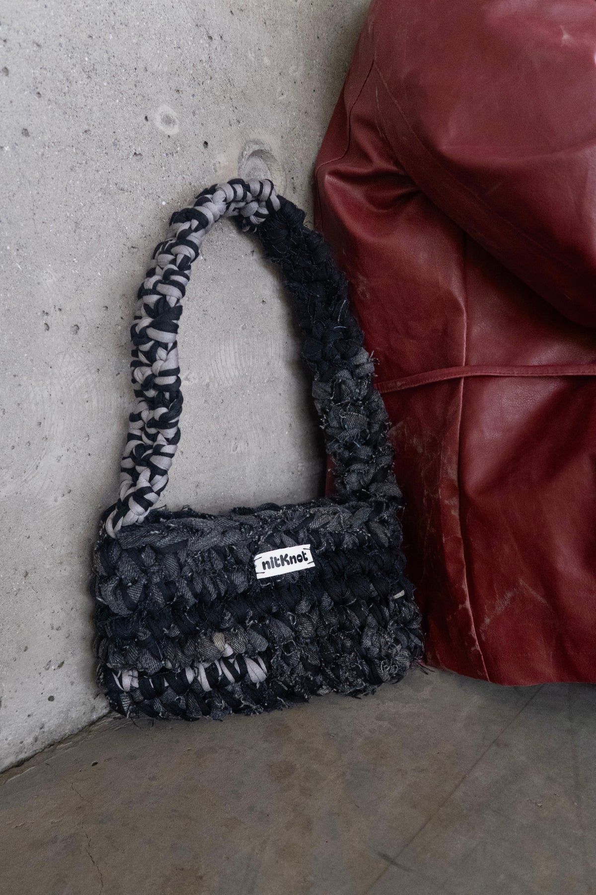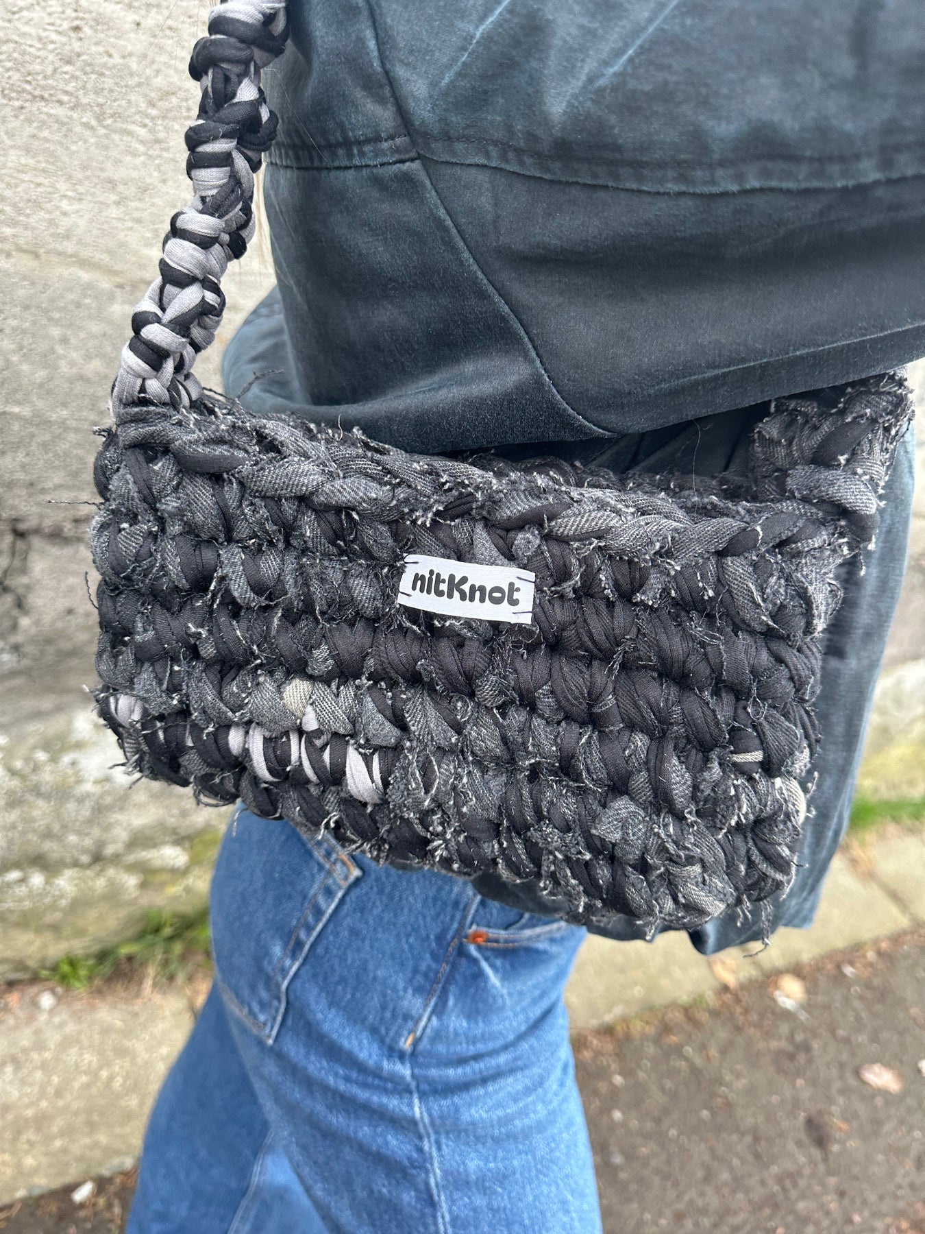 Nitknot eru handhekklaðar töskur úr endurunnu efni. Töskurnar eru heklaðar á Íslandi af Katrínu Mist Haraldsdóttur og er hver taska einstök.