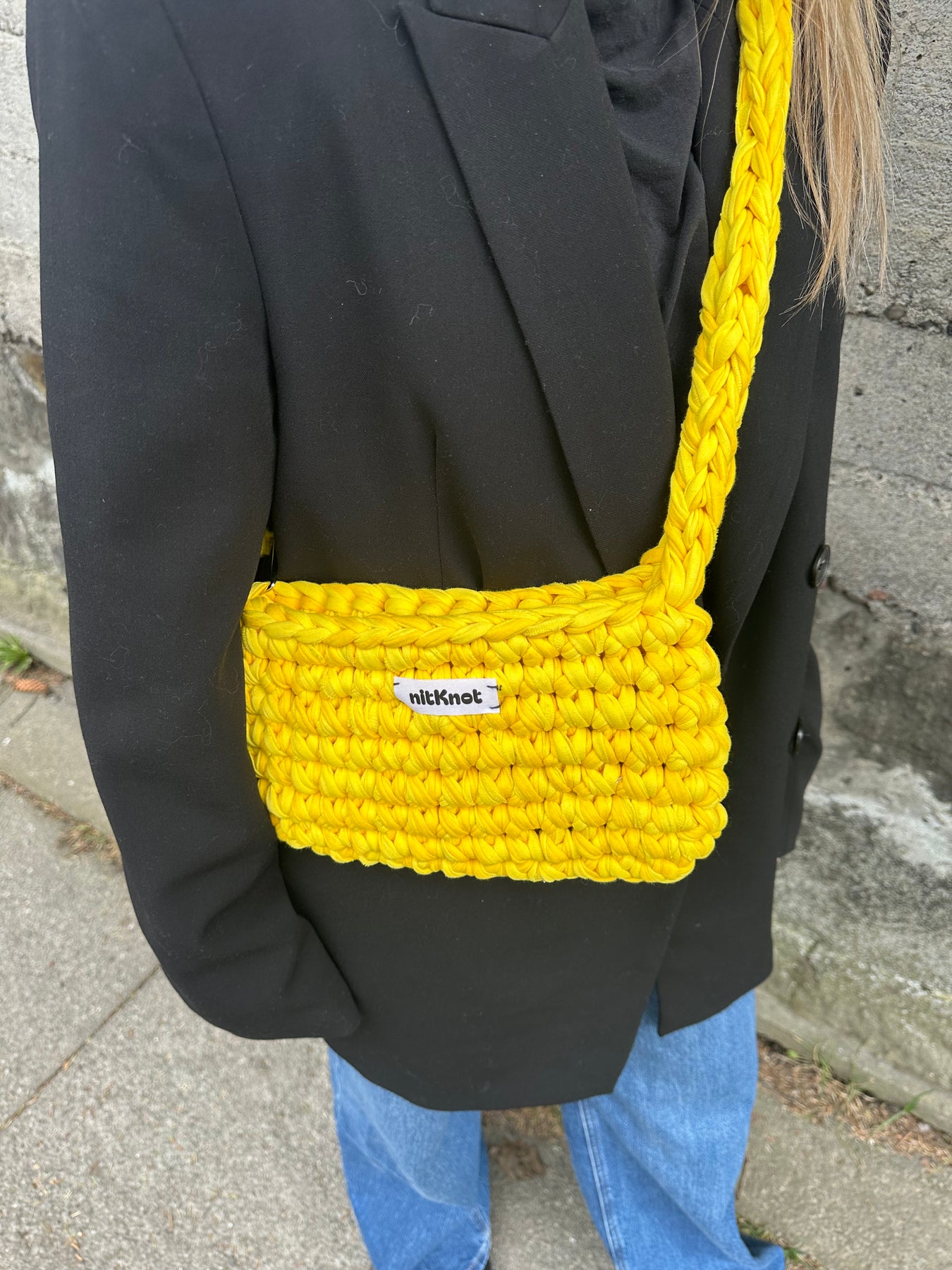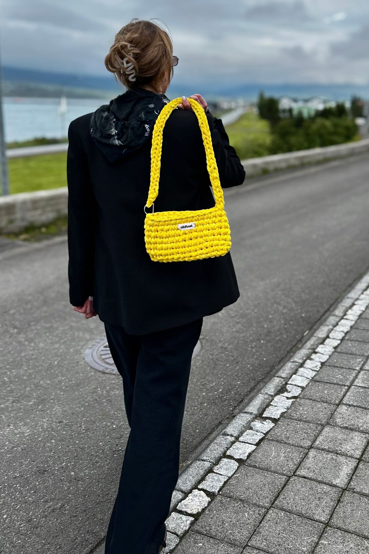 Stilla nr.1 er gul taska unnin úr endurunnu t-shirt garni.